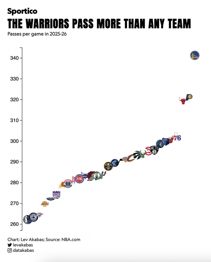 星空体育 自成一片!豪杰本赛季场均传球数定约唯独档 卫冕冠军倒三