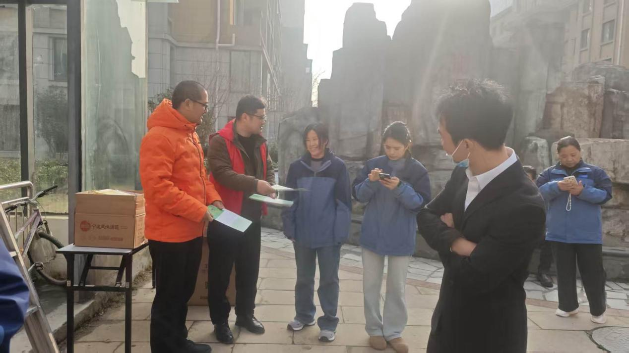在协助披发元宵的同期,志愿者收拢住户勾通、疏通氛围好的故意时机,通过建立宣传辩论台、吊挂夺目横幅、披发宣传折页等表情,向等候领取元宵的住户开展反洗钱常识宣传。
