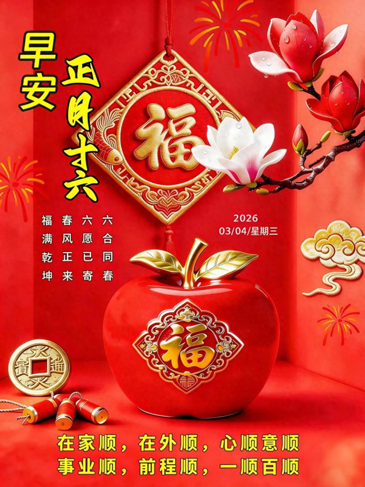 今天正月十六,愿顺顺利利开启新的一段旅程。祝愿马年里所求皆称愿,所行皆坦途,日子厚重有光,好运步步相随。