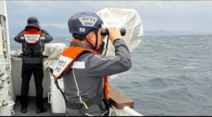 ▲韩国海警正在拜谒