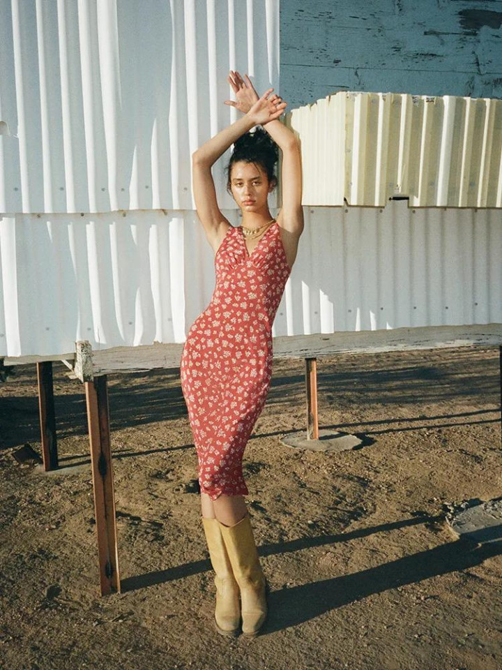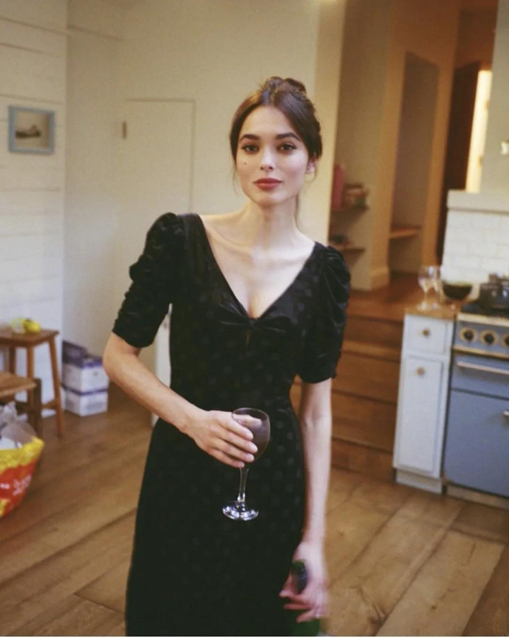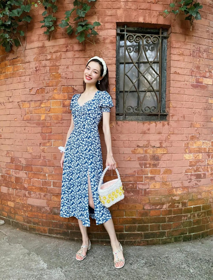 V领,它能拉长脖颈的线条,高开衩,能稍微显现小腿,吊带款的,要选肩线利落、能显现锁骨的,花色就算再秀逸,也得是东说念主能独霸得了能力穿得颜面。